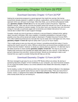 Read Online geometry chapter 13 form 2d Doc online is a convenient and frugal way to read geometry chapter 13 form 2d you love right from the comfort of your own home. Yes, there sites where you can get Doc "for free" but the ones listed below are clean from viruses and completely legal to use.