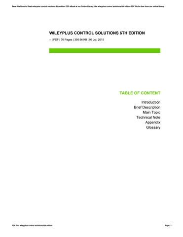 Read Online wileyplus control solutions Epub By Click Button. wileyplus control solutions it’s easy to recommend a new book category such as Novel, journal, comic, magazin, ect. You see it and you just know that the designer is also an author and understands the challenges involved with having a good book. You can easy klick for detailing book and you can read it online, even you can download it